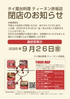 【ティーヌン赤坂店 閉業のお知らせ】この度、2025年9月26日(金)をもちまして「ティーヌン赤坂店」は、閉業させていただくことになりました。2000年の開業より長きに渡り、お客様からいただきました温かいご支...
